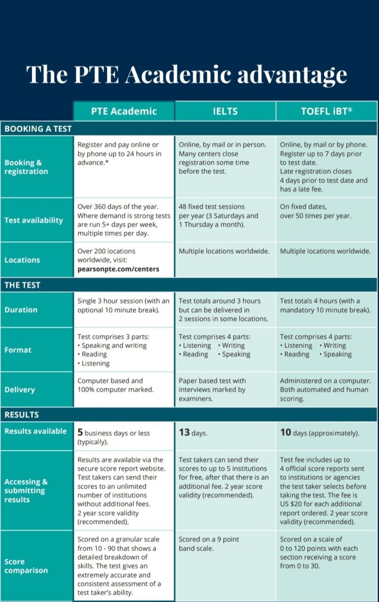 1) PTE Academic can be taken on any of the prescribed 360 days of the year whereas other English Language Tests are conducted on 48-50 days a year.